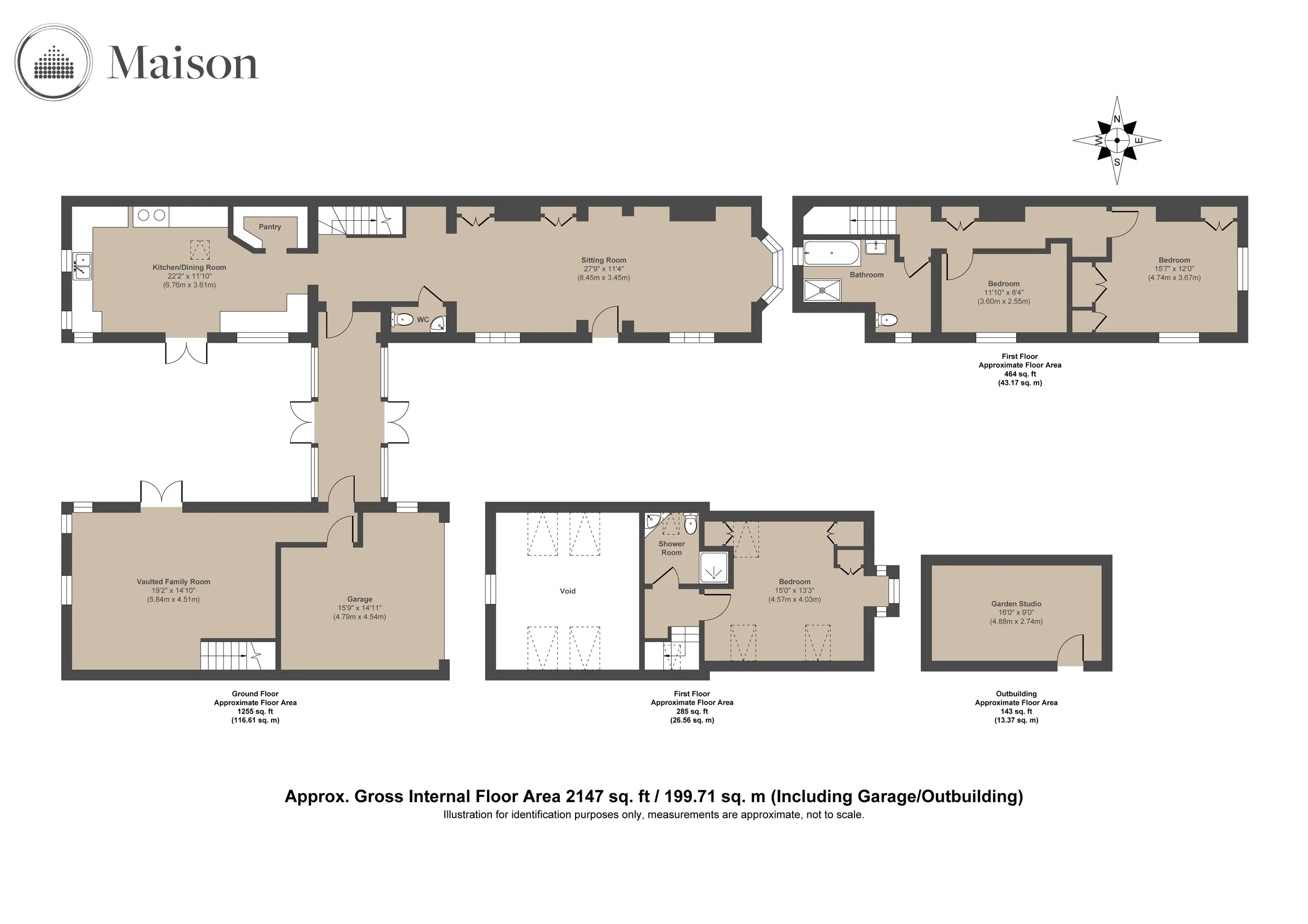 A standout feature is the detached garden studio, a highly versatile space ideal as a home office, creative retreat, gym, or additional guest accommodation. The garage, with internal access, offers further storage or secure parking, and there is ample driveway space for multiple vehicles.