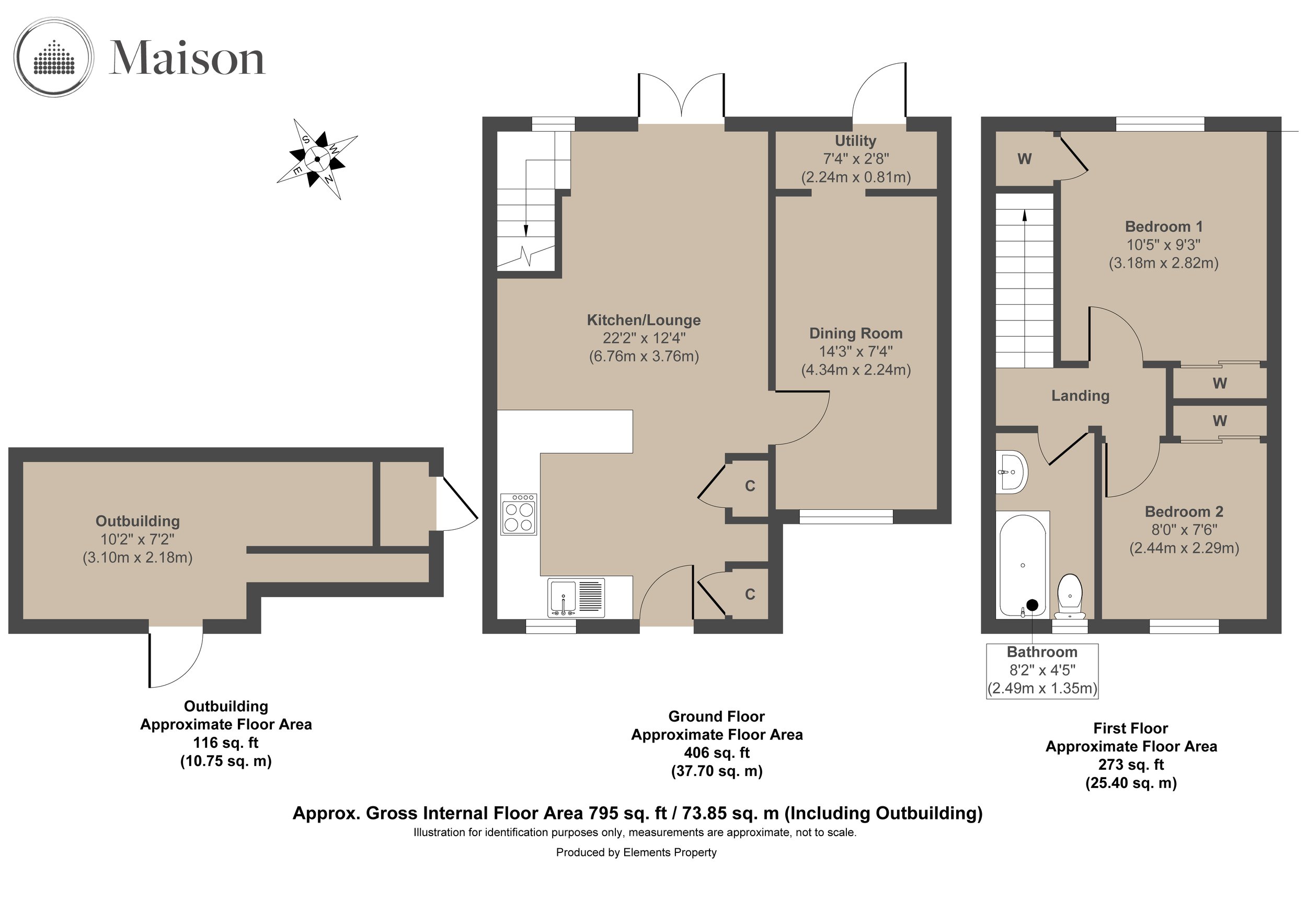The original garage has been converted to create an additional reception room, currently used as a home office, offering valuable flexibility for remote working or as a snug or playroom. Off this space, a utility area provides a practical spot for laundry and extra storage. Upstairs, there are two bedrooms, a comfortable main bedroom with walk in wardrobe, and a second bedroom overlooking the front, perfect for a child’s room or guest space. A stylish bathroom with a rainfall shower over the bath and a contemporary finish completes the first floor.